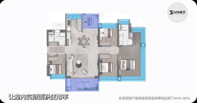 还有,建筑面积大概 149 平方米的户型也是专门打造的。南北双向观景阳台,深入达成合同 2.2 米