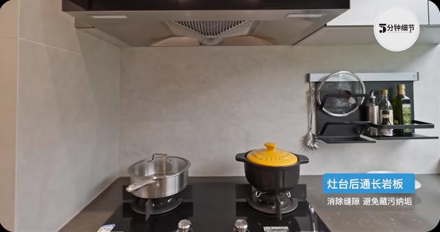 炉子后面是一块完整、通长的岩板,没有缝隙,没有污垢,没有盲点清洗。