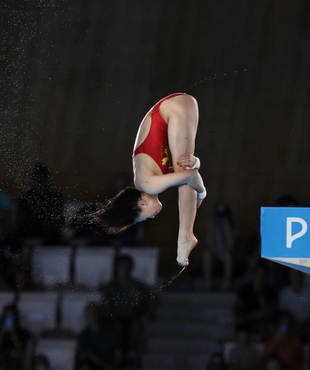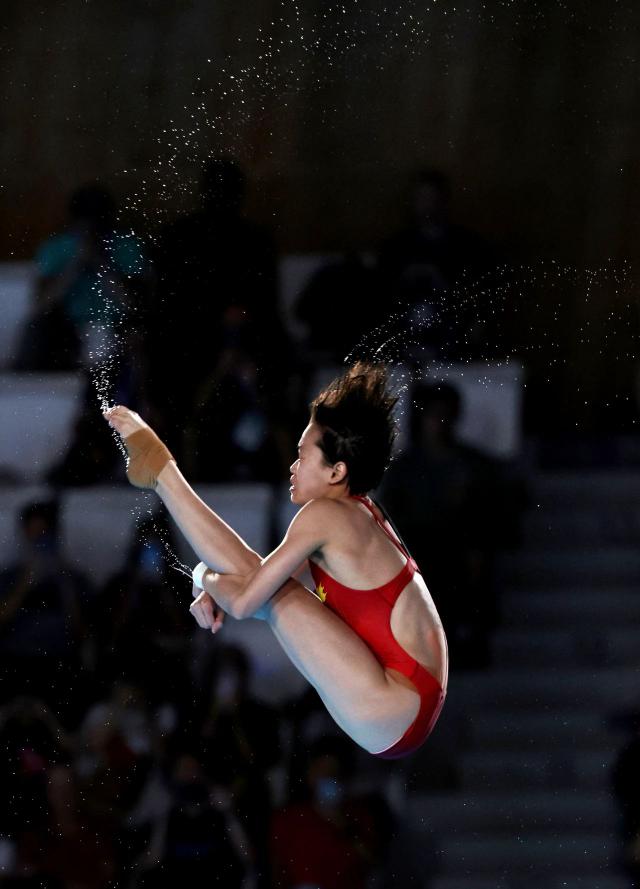 8 月 6 日本,中国选手陈芋汐在赛场上。新华社记者 张玉薇 摄
