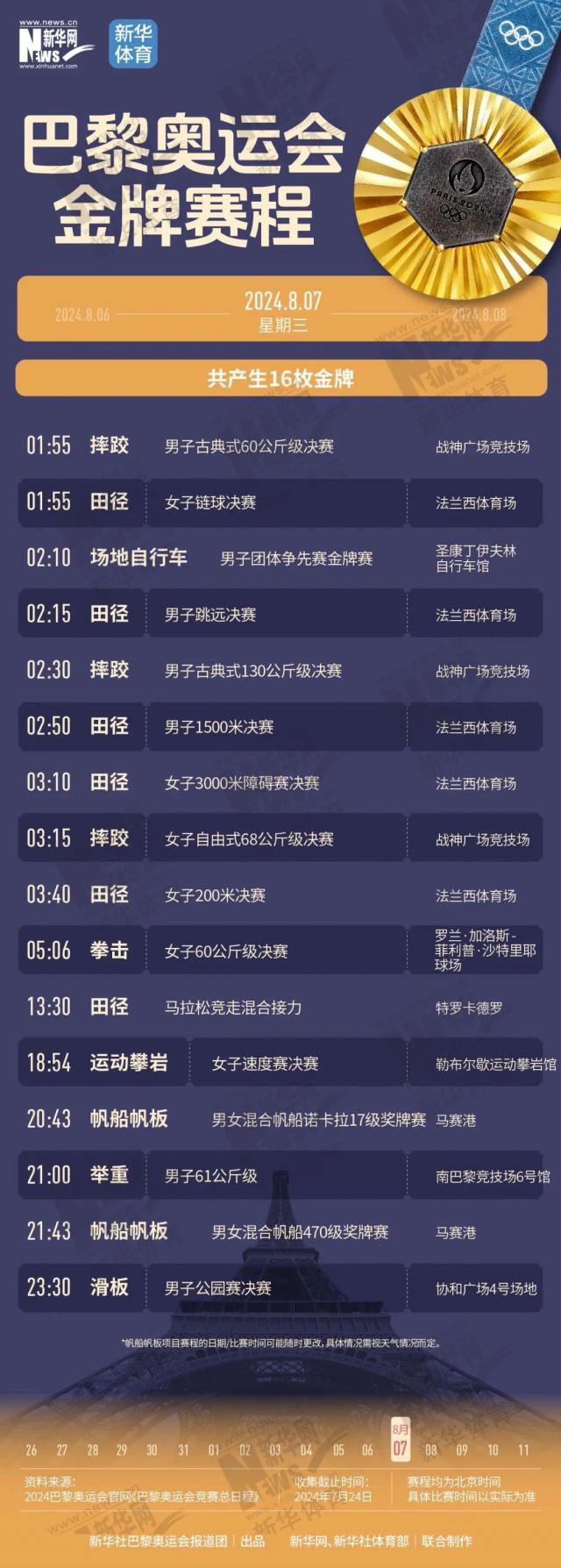 当地时间 8 月 7 一天,巴黎奥运会进入第一名 12 个比赛日。