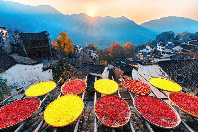 在中国南方的一些地区,晒秋已经成为农民节日和收获的“盛典”。“晒秋”的秋天不仅代表了秋天,也代表了收获的喜悦。人们会利用房子前后的平台、屋顶等空地,晒太阳收获作物。干燥的食物越多,收获就越好。