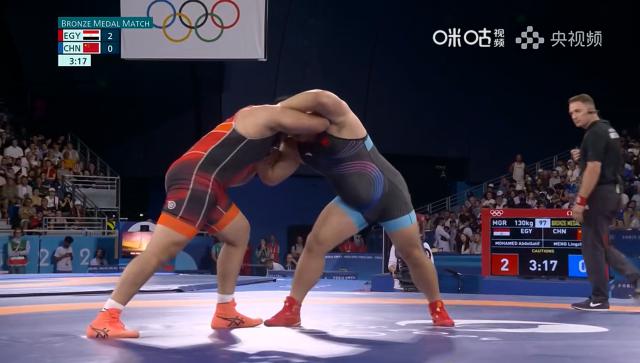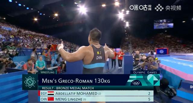 摔跤男子的古典风格在今天早晨结束。 130 在公斤级铜牌赛中,中国选手孟令哲以 5:2 击败对手,获得铜牌。祝贺孟令哲!