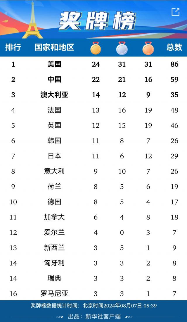 北京时间 8 月 7 21月21日凌晨,巴黎奥运会女子链球决赛 中国选手赵杰凭借第一名 2 抛掷出的 74.27 大米,获得一枚铜牌。这也是中国田径队在本届奥运会上获得的第三枚奖牌。加拿大选手罗杰斯 76.97 美国选手艾奇昆沃克获得金牌。 75.48 大米获得亚军。