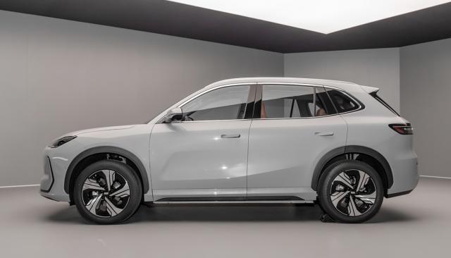 首先是造型设计,无论是吉利自己的新能源,还是其他品牌的新能源 SUV 相比,银河 E5 外观相对简单中等。汽车前后没有夸张和个性化的元素,侧线相当平静,没有复杂的外观变化,也没有明显的溜背设计。