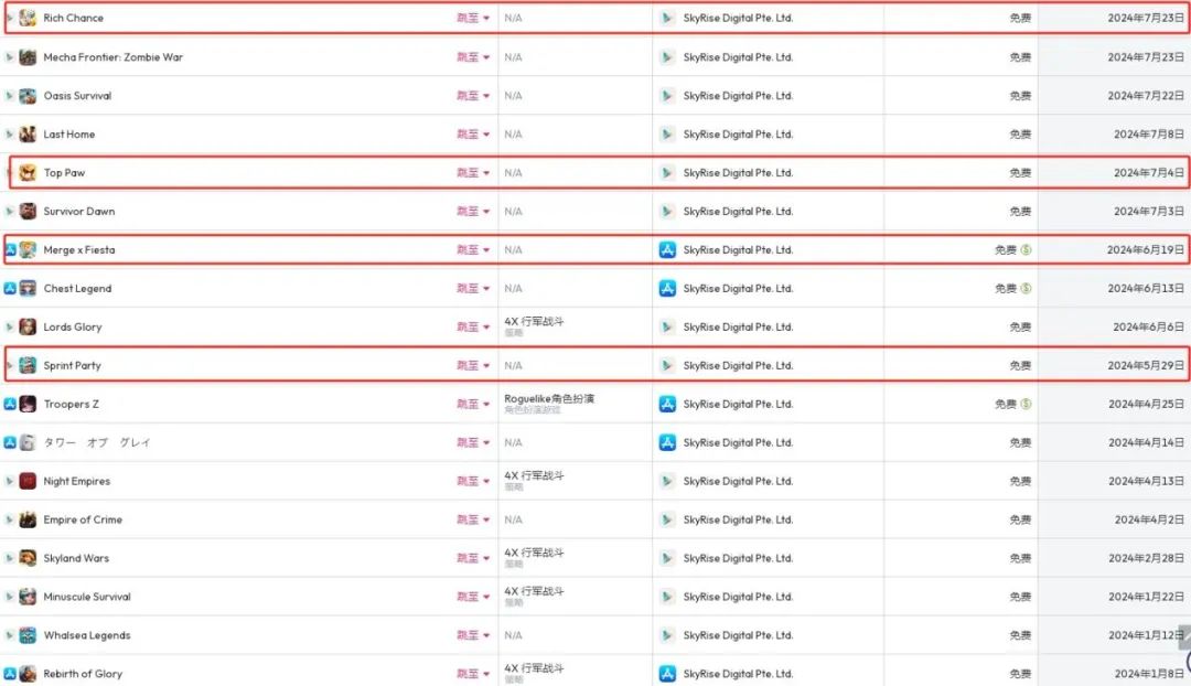 虽然,作者发现了 IGG “主要发行帐户”IGG.com“最近一款正式上线的新产品还在 2023 年 4 月发布的 4X SLG「Viking Rise:Valhalla」,但另一个在那里 Google Play 上显示为 IGG “旗下制造商”SkyRise Digital Pte. Ltd.”那是相当活跃的。