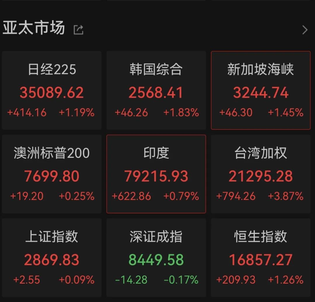 今天,亚太主要股指集体收涨。日经225指数涨幅一度扩大至3%,接近收盘时迅速下跌。