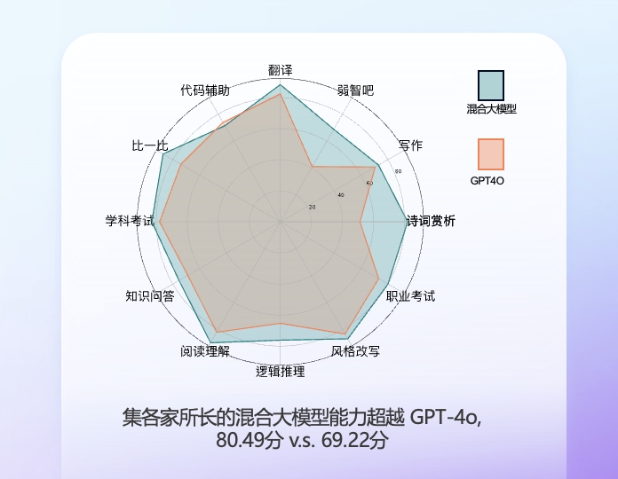 由于混合大模型结合了各种国产大模型的优势,展现了强大的综合能力,在12个单项评估中,有11个超越了被称为“全能”的GPT-4o,因此在业内也被称为360的“复仇者联盟”。