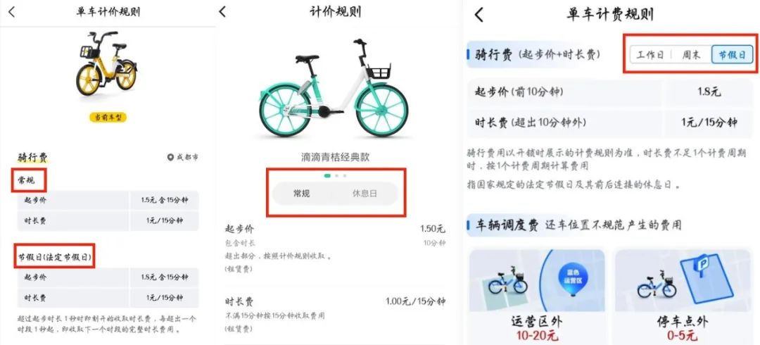 此外,三家自行车共享企业的客服都采用了类似的词汇:自行车共享按时间收费,收费规则由起步价、时长费和调度费组成。每个城市的收费标准根据城市和时间段不同而不同。解锁界面的定价规则应该是主要的,用户可以在骑行前查看。