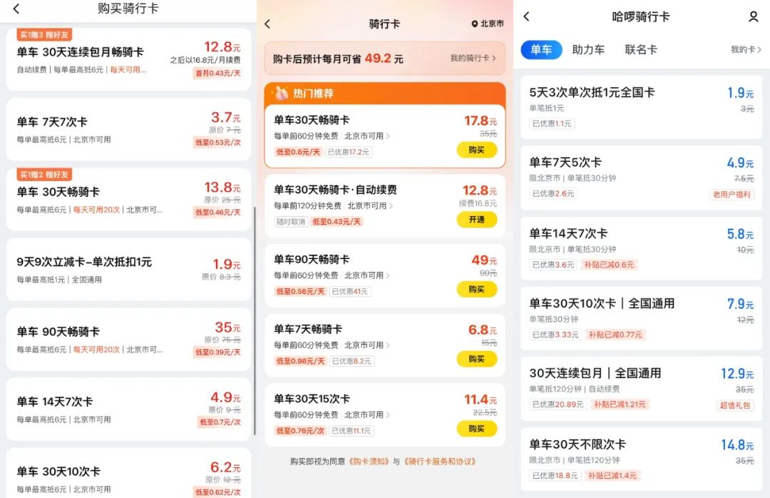 次卡、月卡、季卡、年卡是自行车共享企业的核心业务。APP中更优惠的措施是增强用户粘性。各种卡套餐都有一个共同的目标,那就是提醒你不要赔钱。