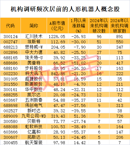 机构调查频率较高的还有埃斯顿,思特威-W、中大力德,埃夫特-U、奥普特等。