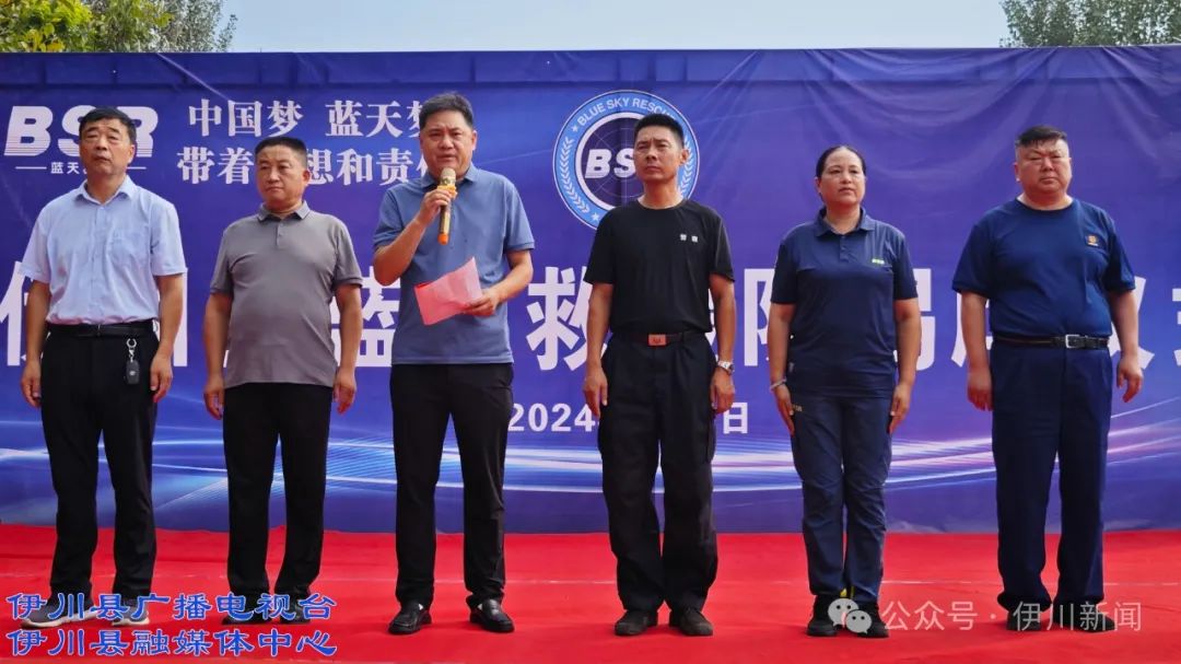 仪式上,王爱红、李明金、县应急管理局和伊川蓝天救援队相关负责人分别发言;夏堡村和吕店镇袁庄村的受援人员向救援队赠送了横幅。