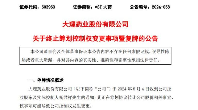 仅仅准备了3天,*ST大药(603963)控制权变更事项就匆匆宣布停止。