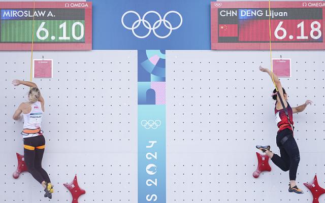 奥运会速度攀岩对决,资格赛选择成绩排名,晋级四分之一决赛淘汰赛后,是一场持续三轮的两两对战。在不到半个小时的时间里,被球队公认为“比赛选手”的邓丽娟在巴黎的彩色岩壁上留下了不断超越自己的足迹。
