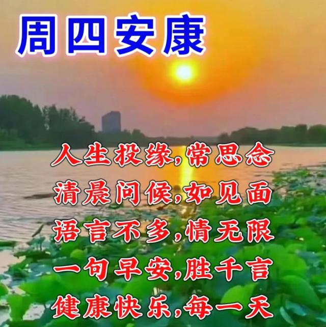 人生几十年,幸福是关键;一切都像浮云,健康第一;只要你身体健康,一切都会很美好。周四早上好!愿你快乐地度过时光,健康地品味生活!