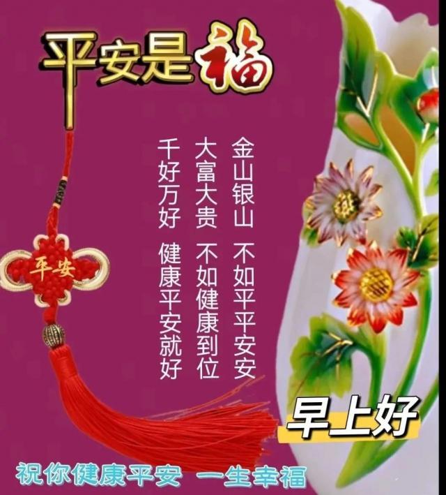 活着就是财富,兴趣就是风景。不要纠结,不要放弃。微笑着放手,冷静地转身。愿知足常乐,朋友,早上好,幸福快乐,愿和平幸福一路相伴,愿时间缓慢,永远幸福,美好吉祥!