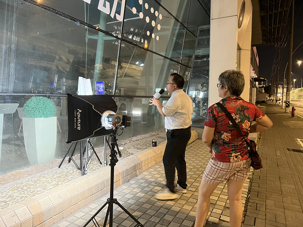 八月一日晚九点多,欧敬民在路边直播。 本文图均为报纸记者。 陈斯斯 图