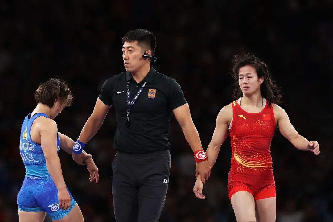 中国球员冯紫琪在巴黎奥运会摔跤女子自由式50公斤铜牌赛中击败对手,获得铜牌!