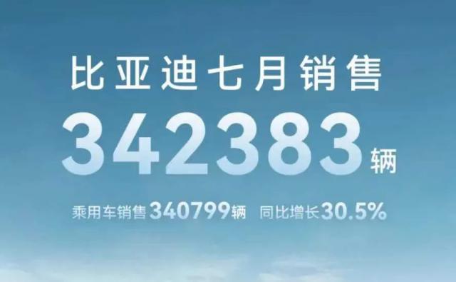 刚刚过去的 7 月份,比亚迪的月销售额已经达到。 342383 台湾,同比增长 30%。