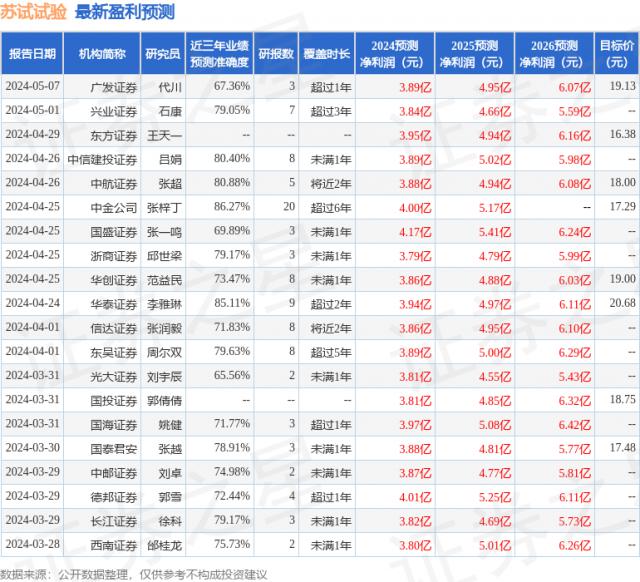 对企业进行预期 2024-2026 年度营业收入分别为 25.26 亿元、30.21 亿元、35.25 归母净利分别为亿元,分别为亿元。 3.85 亿元、4.89 亿元、5.96 亿元,对应 PE 分别是 14.8X、11.7X、9.6X。我们预计苏试将在 2024-2026 2008年保持高速增长,首次覆盖苏试验“买入”评级。