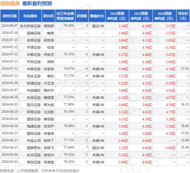 根据证券之星数据中心近三年发布的研究报告数据,东北证券李恒光研究人员团队对该股进行了深入研究,近三年的预测准确度均值为 预测78.52% 2024 年度归属净利润为利润 3.23 十亿,根据现价转换预测。 PE 为 17.18。