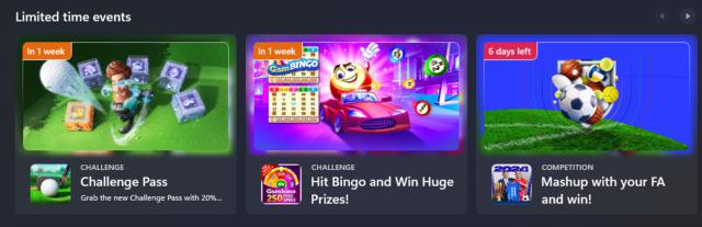 在某些地区,微软试着“ Games “在页面上开一个新版块,展示游戏中的首选活动,目前功能正在测试中。