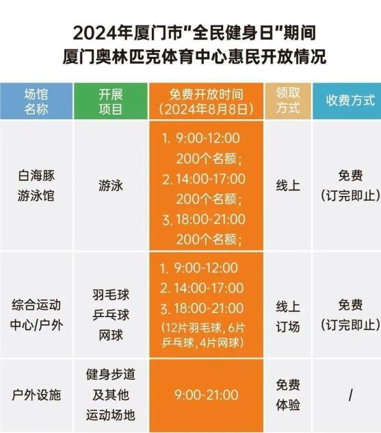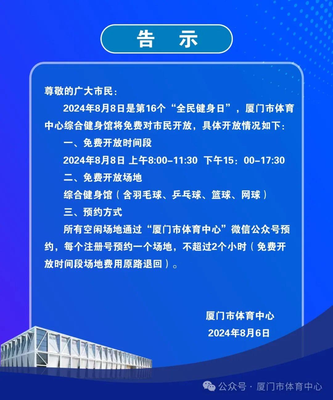 免费开放场馆:游泳池,健身房,羽毛球馆(一楼)、羽乒馆(四楼)、网球场,室外篮球场,气排球场