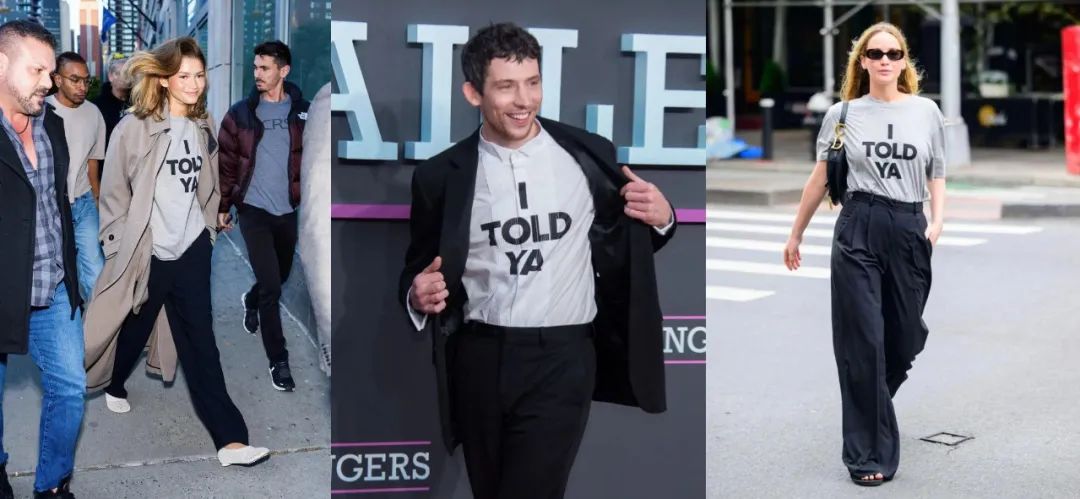 不仅如此,Loewe的创意总监Jonathana Anderson还担任电影《挑战者》的服装造型,设计了一个胸前印着“挑战者”的款式I TOLD YA“T恤,我告诉过你),而且多次被明星Zendayaya、Josh O’Connor 和 Jennifer 身上穿着Lawrence。随后,Loewe推出了这件t恤,并立即售出,它在Lyst上的搜索量也因此在第二季度增加了29%。