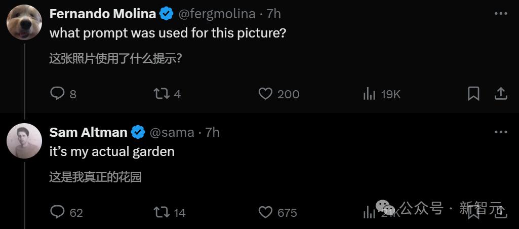 更为有趣的是,误以为AI生成图像的网友在网上寻求prompt。奥特曼自己决定,这是我的花园。