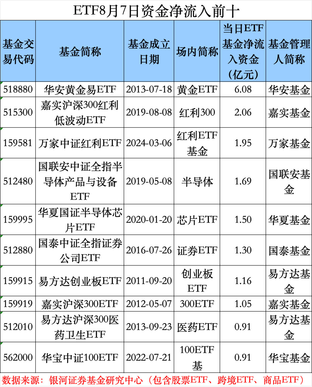 根据华夏基金的计算,8月7日,行业ETF净流入3.60亿元,港股ETF净流入3.26亿元。