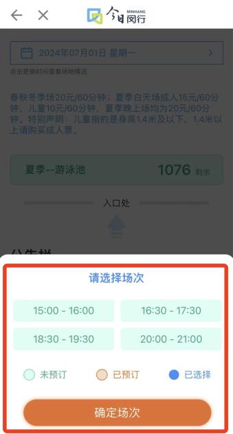当前,闵行区游泳池的开放时间分为下午和晚上,共15个。:00—16:00、16:30—17:30、18:30—19:30、20:00—21:居民可以选择004个时间段,每个时间段限制300人。