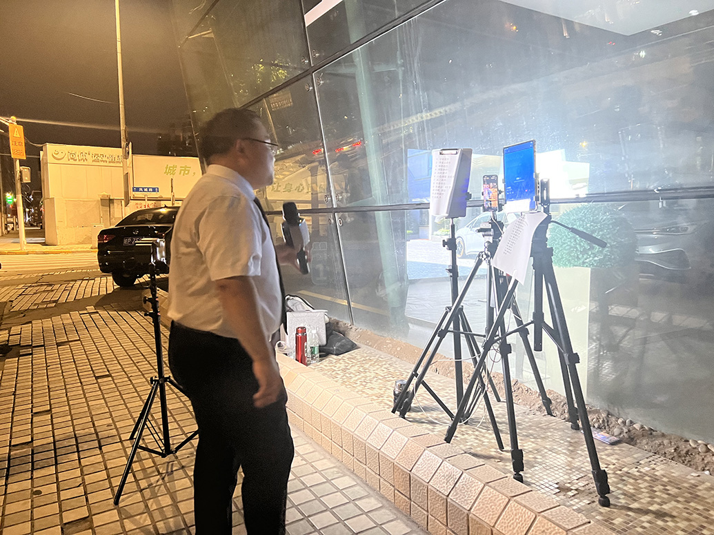 八月一日晚九点多,欧敬民在路边直播。 本文图均为报纸记者。 陈斯斯 图