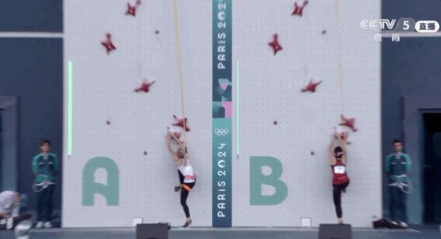 巴黎奥运会运动攀岩女子速度赛决赛中,