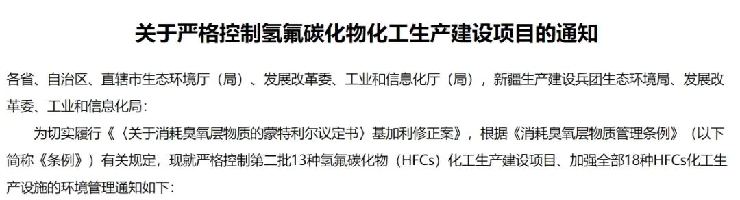 原标题:“【行业信息】禁止新建13种受控用途HFCs产能”