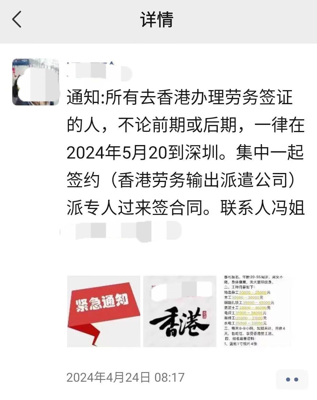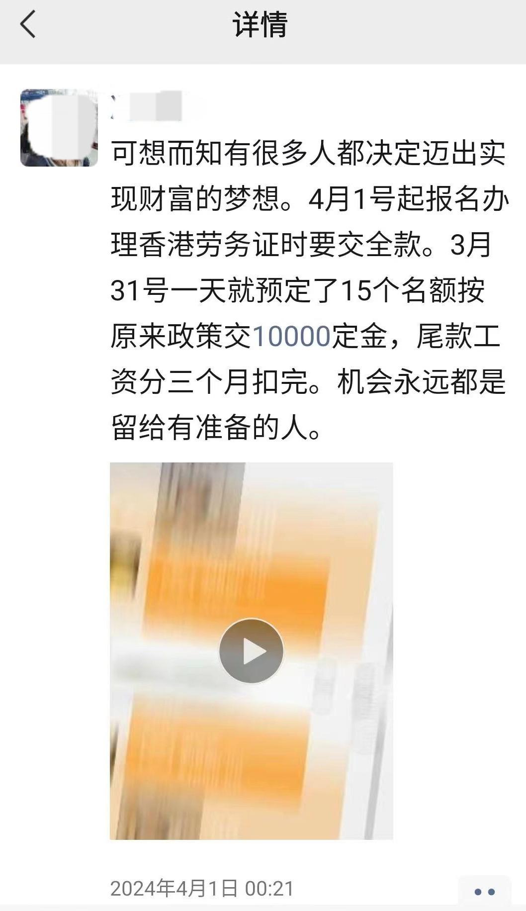 记者在网上搜索发现,早在2023年底,就有消息透露,内地一些非法中介声称可以一站式安排在香港从事高薪工作。事实上,他们利用高薪诱惑内地人去香港做黑工,然后通过申请假证或向工人骗取昂贵的代理费。