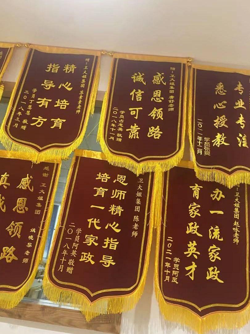 在“卫大姐”家政公司拍摄的何晓燕锦旗。(面试对象供图片)