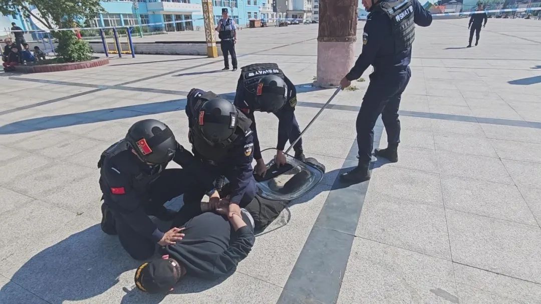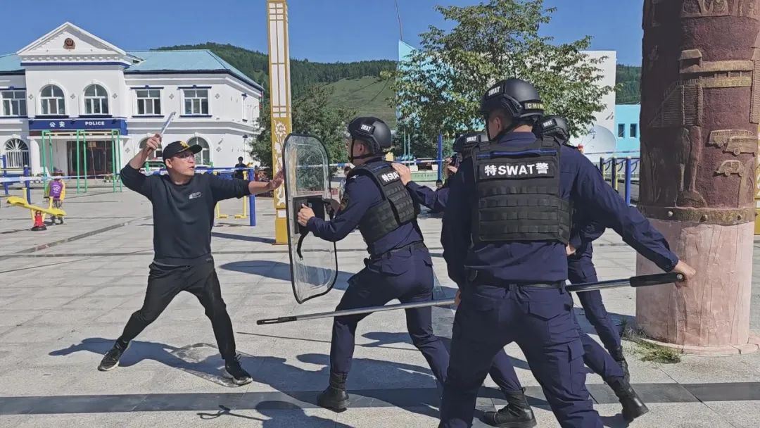 在莫尔道嘎绿星文化广场上,一名男子持刀伤人,与莫尔道嘎边境派出所民警对峙。莫尔道嘎分局收到莫尔道嘎边境派出所的报警电话,要求协助处理。莫尔道嘎分局情指中心立即启动应急预案,聚集6名特警队员赶赴现场。到达现场后,特警队员与边境派出所民警结合现场具体情况制定逮捕计划,共同逮捕犯罪嫌疑人。在密切配合下,经过激烈的战斗,犯罪嫌疑人被特警队员制服,特警队员和边境派出所民警共同带来犯罪嫌疑人,成功完成了逮捕任务。