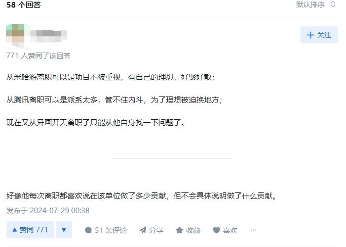 就像一个网友在知乎一样「如何看待贺甲再一次从艺画开始辞职?」在这一问题下,高赞回答: