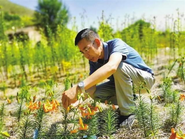当天,在这个基地上,兰州百合产区的种植者高度认可,老少皆知,被称为兰州百合“老大”的梁玉文也在给百合授粉。