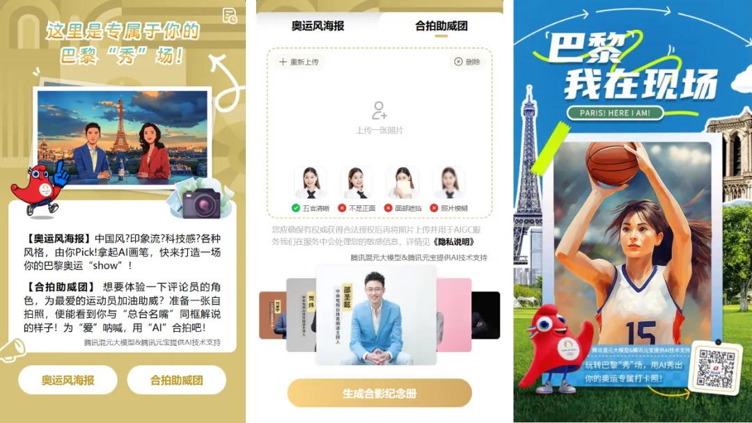 在奥运会上,元宝、咪咕视频等都推出了丰富的AI照片模板。