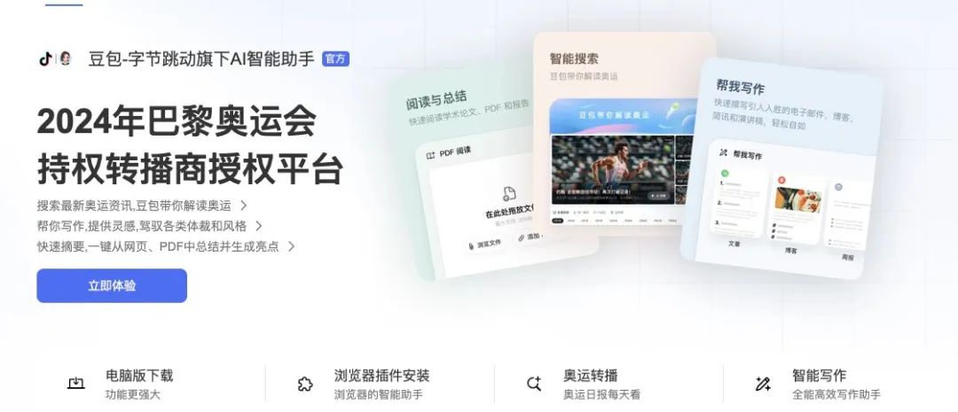 比如豆包网页版推出了“AI带你解读奥运会”专区,不仅为用户提供了奥运热点时事的第一手消息,还增加了比赛回顾、AI讲解等精彩功能。