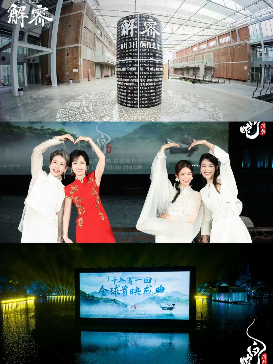 回到今年,看起来也是必然要把“首映礼整活儿”再推上一步。陈思诚新作、刘昊然主演的电影《解密》将首播与展览相结合,最大限度地扩大了首播规模,主题沉浸在朗园STATION的互动展览中,电影的首映式全程在展览现场直播。