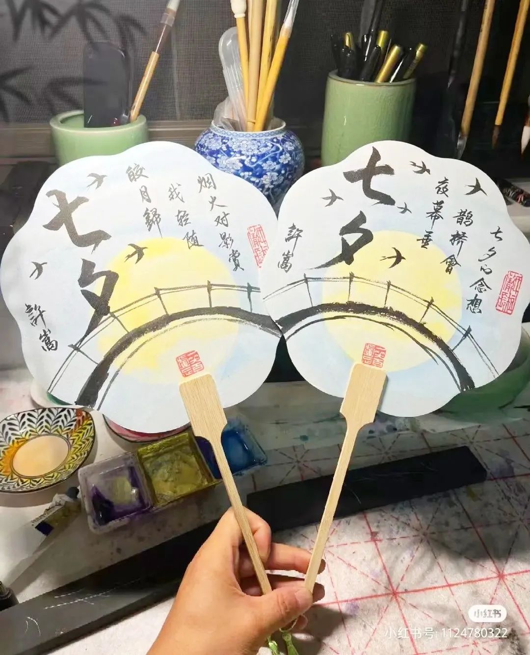 活动内容:在团扇上写一首关于七夕的诗,感受中华古诗与团扇艺术相结合的魅力。