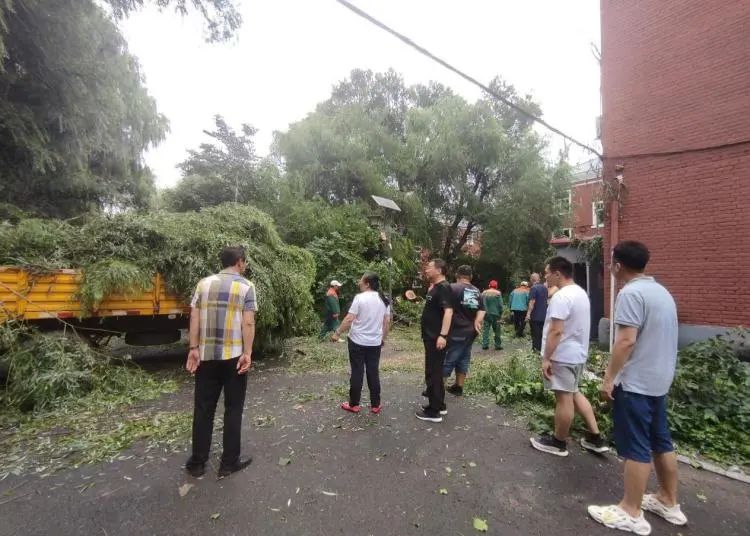 区园林局园林绿化管护中心获悉信息,启动应急处置方式,派出5辆车,20多人给予支持和帮助。园林部门工作人员清理倒塌的树木,街道办事处和社区工作人员维护现场秩序,疏导交通,协助工作人员开展工作。两个多小时后,倒塌的树木被清除,道路恢复平稳。