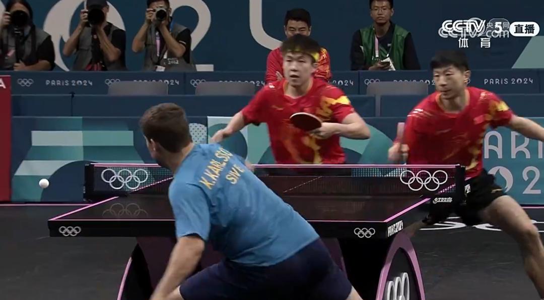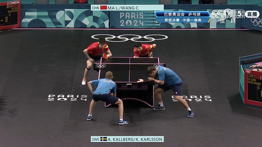在第一场比赛中,马龙和王楚钦与卡尔森和卡尔伯格对阵瑞典球员。