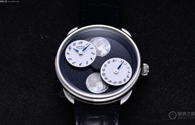 手表评价:既然有优美的星空,白色的月光自然是不可或缺的。如果你想选择一款结合星盘和月相功能的最出彩的手表,我会毫不犹豫地选择爱马仕。 ARCEAU系列 L ’ HEURE DE LA LUNE 月读时间表。我经常和你谈论爱马仕造表的优势,因为它有摆脱传统设计理念的创新理念,比如月读时间,以异想天开的创新理念重新诠释了月相的传统天文功能。爱马仕通过梦幻迷人的设计,让月亮不仅仅局限于手表上的传统窗口,而是让月亮在星空盘面上全方位展现出令人兴奋的美。一对南北半球月相静静地挂在沙金石盘面上,就像星空一样,而两个副盘围绕盘面中心移动,随着手表的专利机制节奏保持。 59 在盘面周围的运动周期中,真实的月相被微妙地展示出来。此时此刻,爱马仕通过自己编织的华丽梦境,将时间和星空明月的展示方式升华到了艺术的维度。与此同时,爱马仕对传统工艺的精雕细琢,也体现在南半球月相上。白色飞马是用珍珠贝粉微绘勾勒出来的,这种飞马的图案叫做“满月”,由插画家组成。 Dimitri Rybaltchenko 设计,隐藏在月亮中,也是为了描绘月读时间,结合梦幻与真实两个世界的过渡时空,让人拥有无尽的理想空问。