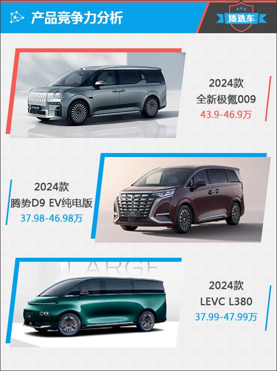 现在,新能源 MPV 市场非常卷,近两年推出的新车型如雨后春笋般涌现。在这些模式中 2024 款腾势 D9 EV 纯电版和 2024 款 LEVC L380 即关注度较高的车型,尤其是前者,具有良好的市场表现。下一步,我们将两者列为竞争对手,看一看。 2024 款全新极氪 009 能否应对。