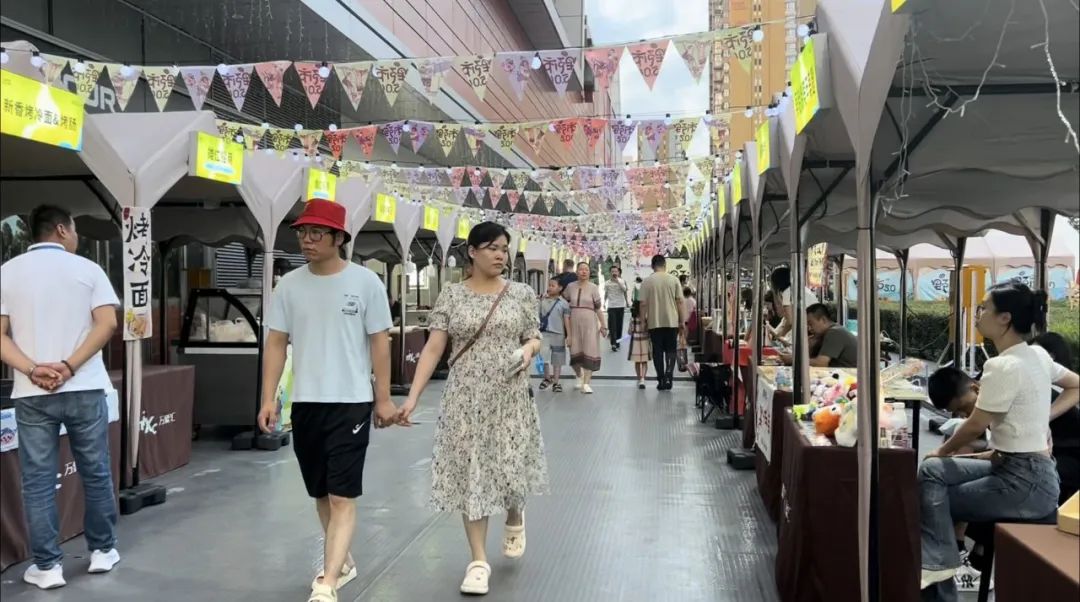 哈尔滨新区“野市”已经举办了四次。今年夏天,哈尔滨新区致力于在万象汇广场打造“野市5.0”夏季岛式主题街区。整个街区采用夏季暖橙色和沙滩碧水蓝天作为主题色调,为游客和市民呈现一个沉浸式夏季体验场,以清爽的岛式主题。烤鱿鱼,美味冰沙,麻绳手工制作…主题街区摆满了各式各样的美食,手工艺品。伴随着市场的开放,哈尔滨新区市民文化消夏月也同时开启,消夏月活动汇集了乐队表演、舞蹈表演等文化盛宴。