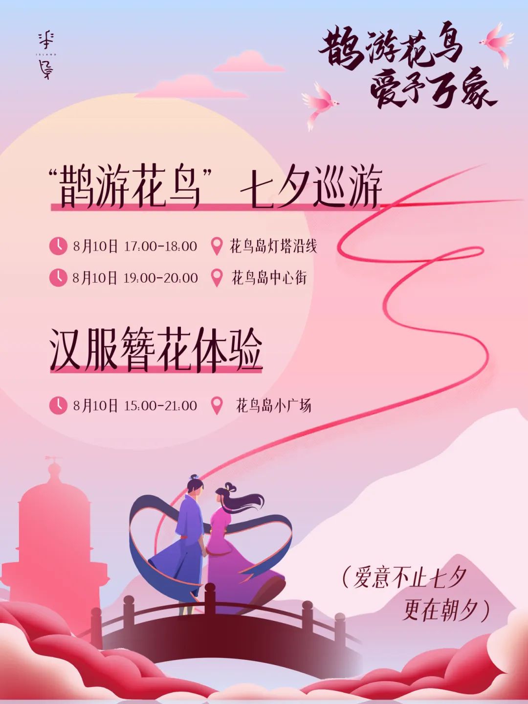 ▌活动详情:汉服巡游、簪花感受、蓝眼泪音乐会...七夕爱情在花鸟岛!(←点击查看)