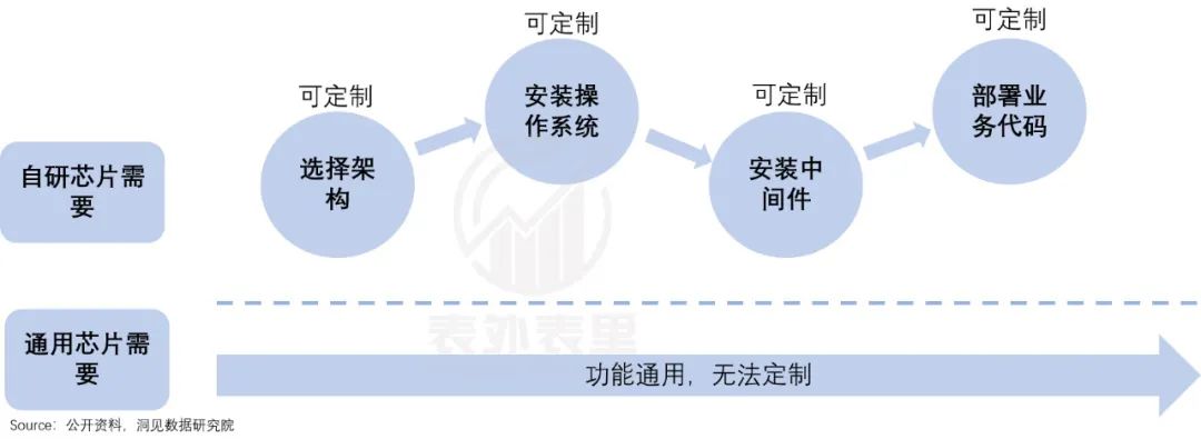 泛AI领域也差不多。芯片可以从架构、上层操作系统、中间件到业务代码等环节进行适配和改造。谷歌的TPU芯片和亚马逊的Graviton芯片都是如此。