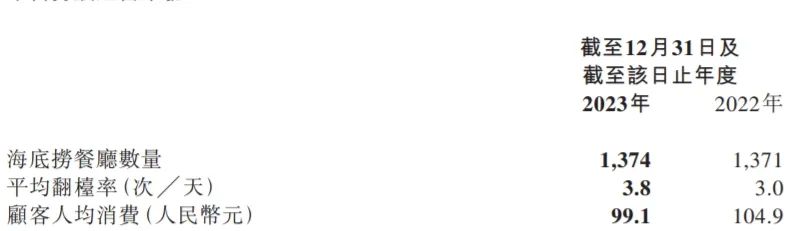 2023年,海底捞将客户数量降至100元以下。同年,客户数量开始回升,上半年达到每天3.3次。到年底,平均客户数量增加到每天3.8次,部分门店甚至可以达到每天4次。